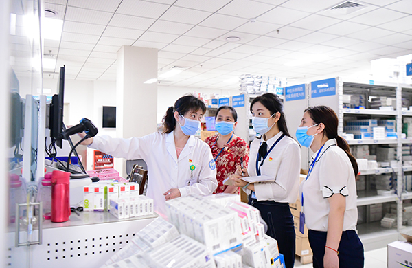 重慶市璧山區(qū)紀委監(jiān)委將整治醫(yī)藥購銷領域腐敗作為“我為群眾辦實事”實踐活動的一項重要內(nèi)容。圖為7月5日,駐區(qū)衛(wèi)生健康委紀檢監(jiān)察組在區(qū)人民醫(yī)院藥房抽查藥品采購、管理等情況。 胡悅建 攝