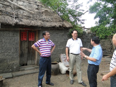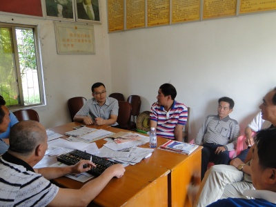??????? 曹棟主任與鎮(zhèn)、村領(lǐng)導(dǎo)商議有關(guān)事項(xiàng)