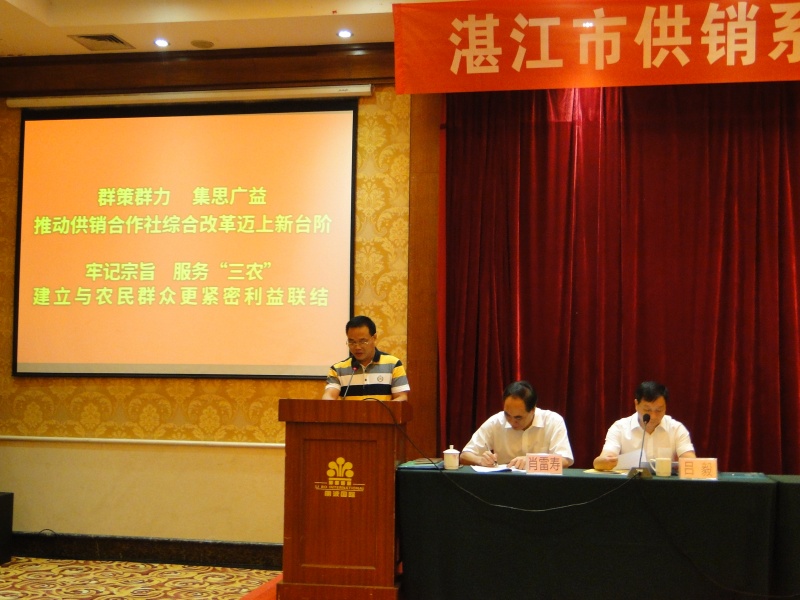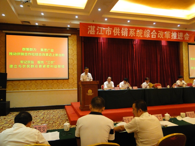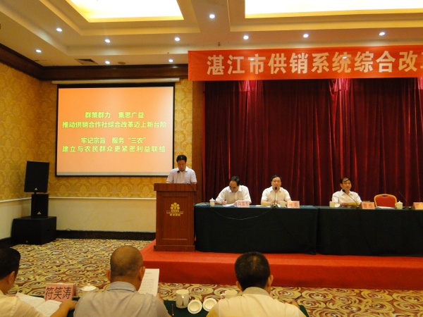 為總結(jié)綜合改革試點(diǎn)工作,交流經(jīng)驗(yàn),傳達(dá)全省供銷社綜合改革推進(jìn)會,9月21-22日,湛江市社召開綜合改革推進(jìn)會。在推進(jìn)會上,徐聞縣社、廉江市社、雷州市社、吳川市等四個綜合改革試點(diǎn)縣(市)分別以綜合改革經(jīng)驗(yàn)、綜合服務(wù)社建設(shè)、農(nóng)資網(wǎng)點(diǎn)連鎖、基層社資產(chǎn)改造等為主題進(jìn)行了經(jīng)驗(yàn)交流發(fā)言,未納入試點(diǎn)的遂溪縣做了表態(tài)發(fā)言。市社副主任蔣勇進(jìn)一步解讀了中央、省的政策文件,副調(diào)研員肖雷壽對下一階段的綜合改革試點(diǎn)工作進(jìn)行了部署,黨委書記、主任曹棟做總結(jié)講話。廉江市副市長歐壯喆應(yīng)邀與會并致辭。