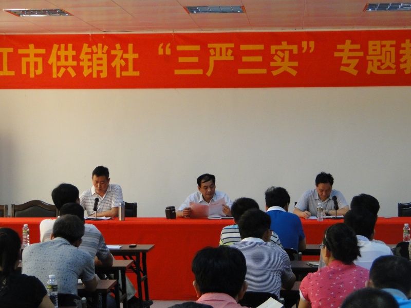 ?????? 5月29日,市社召開“三嚴(yán)三實(shí)”專題教育工作會議,學(xué)習(xí)中央、省委和市委有關(guān)文件精神,部署我社“三嚴(yán)三實(shí)”專題教育工作。黨委書記、主任曹棟做部署講話,副調(diào)研員王新傳達(dá)市委常委會會議精神,副主任呂毅主持會議。各直屬公司、基層社領(lǐng)導(dǎo)班子成員及機(jī)關(guān)干部參加會議。
