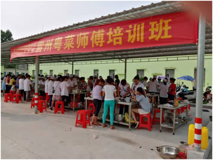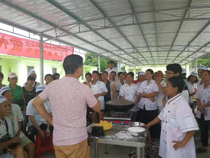 由湛江市供銷社主辦、湛江市技師學(xué)院承辦,雷州松竹鎮(zhèn)協(xié)辦的“粵菜師傅”雷州松竹培訓(xùn)班,自 8月12日開班以來(lái),來(lái)自松竹鎮(zhèn)周邊鄉(xiāng)村的200名貧困農(nóng)村有志青年,在數(shù)位實(shí)踐經(jīng)驗(yàn)豐富、技藝精湛、和藹可親的老師傅指導(dǎo)下,學(xué)習(xí)熱情高漲,如饑如渴、全身心投入到學(xué)習(xí)實(shí)踐中。他們?nèi)褙炞⒌剡M(jìn)行菜肴烹制、糕點(diǎn)制作和餐飲服務(wù)訓(xùn)練。在教學(xué)中,老師傅對(duì)細(xì)致地對(duì)每個(gè)菜品進(jìn)行詳細(xì)講解,包括技術(shù)配方、工藝流程、口味轉(zhuǎn)換等,得到了廣大學(xué)員的高度贊賞。