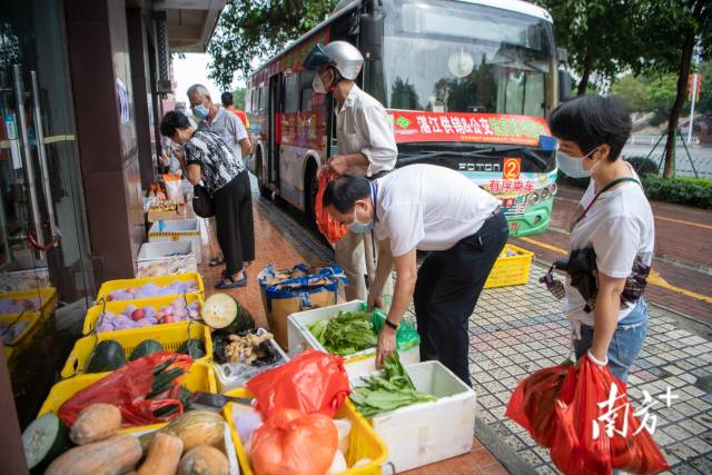 為了有效解決管控區(qū)域“最后一公里”運(yùn)力不足的問(wèn)題,湛江在坡頭區(qū)率先推出10條“移動(dòng)超市”專線,在人口密集小區(qū)開(kāi)設(shè)臨時(shí)售賣點(diǎn),方便群眾就近采購(gòu)。