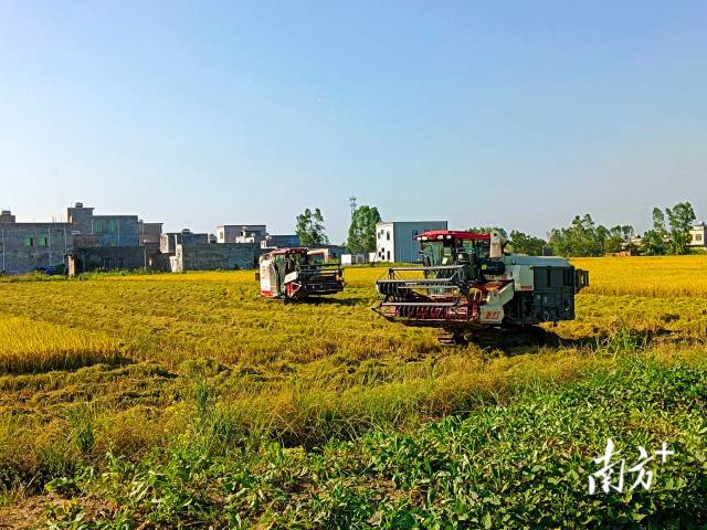 被譽為“廣東糧倉”的雷州市東、西洋正處在稻谷收獲的季節(jié),在雷州市松竹鎮(zhèn)王宅村,農(nóng)民們迎來了令人喜悅的豐收。金黃稻田如同鋪展在大地上的壯麗畫卷,成熟的稻谷隨風搖擺,金色浪潮隨之在大地上翻騰。遠處,收割機轟鳴著在稻田里往返,飽滿的稻穗被帶走,象征著從播種到收割的又一個循環(huán)落下了帷幕。