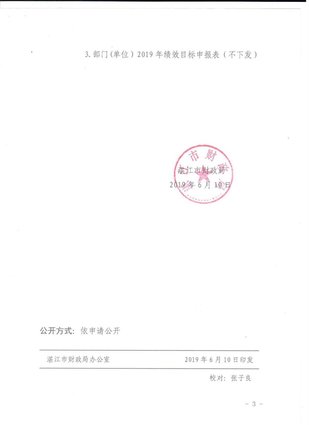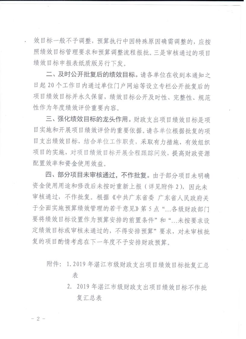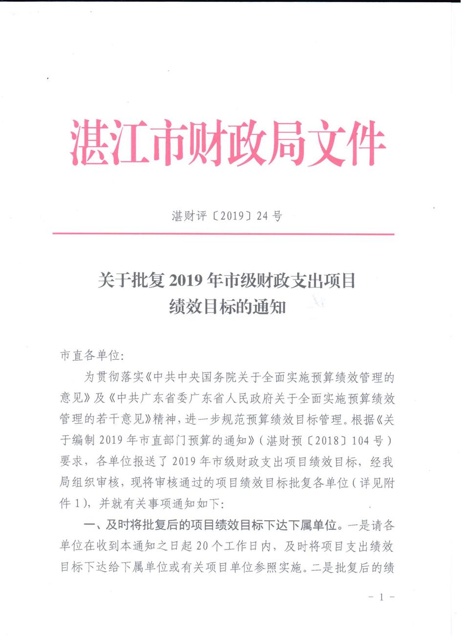 湛江市財(cái)政局關(guān)于批復(fù)2019年市級(jí)財(cái)政支出項(xiàng)目績(jī)效目標(biāo)的通知