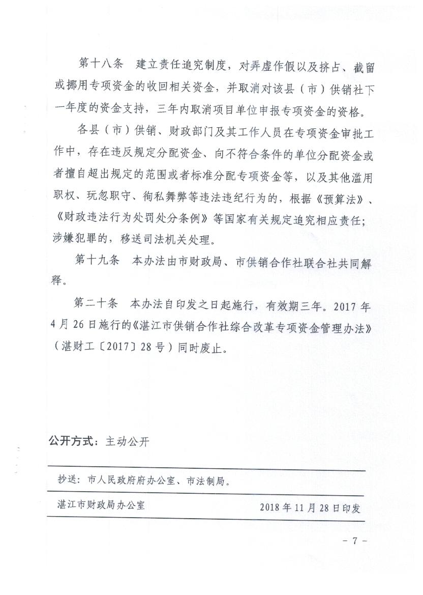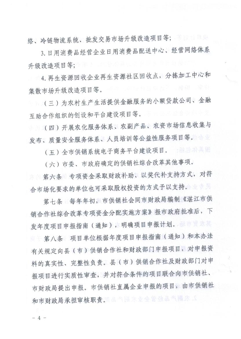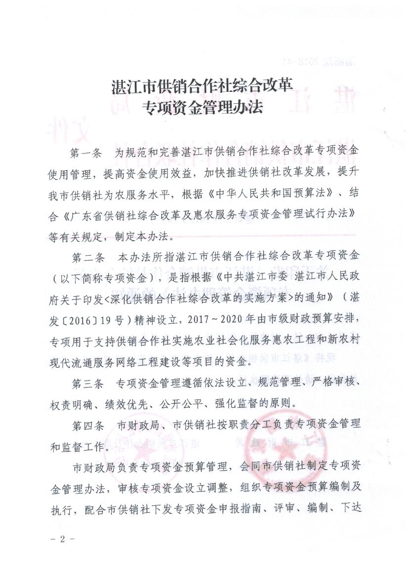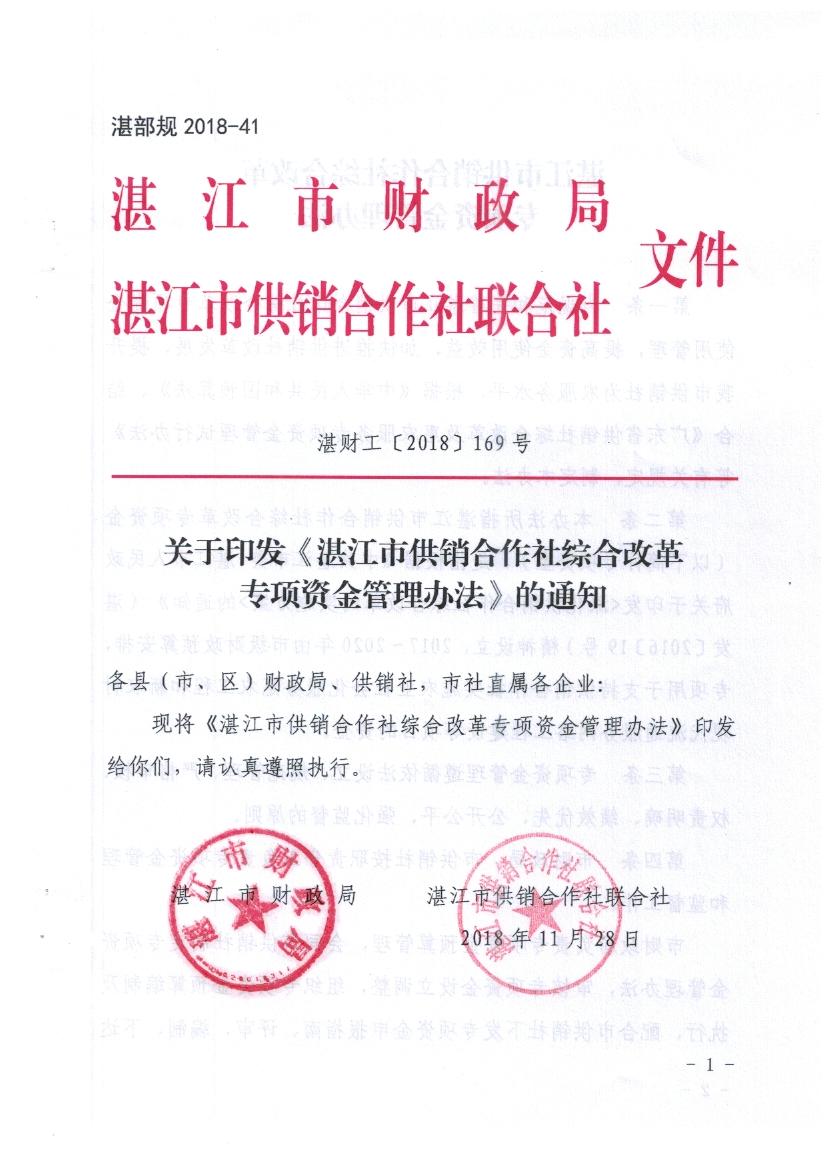 關(guān)于印發(fā)《湛江市供銷合作社綜合改革專項(xiàng)資金管理辦法》的通知