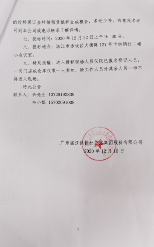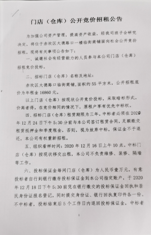 廣東湛江供銷社企業(yè)集團(tuán)股份有限公司關(guān)于大德路口臨街商鋪招租公告