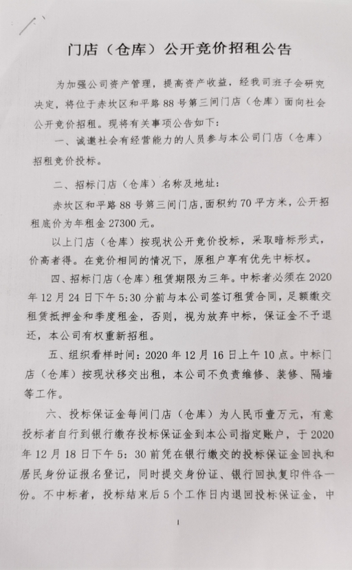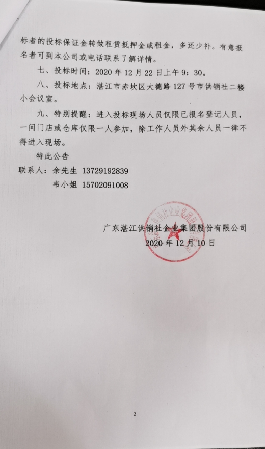 廣東湛江供銷社企業(yè)集團(tuán)股份有限公司關(guān)于和平路88號門店招租公告