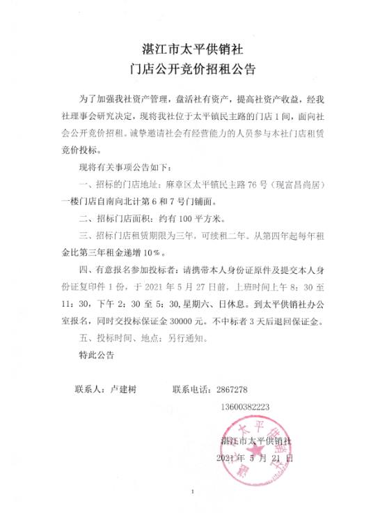 附件:湛江市太平供銷(xiāo)社門(mén)店招租公告.pdf