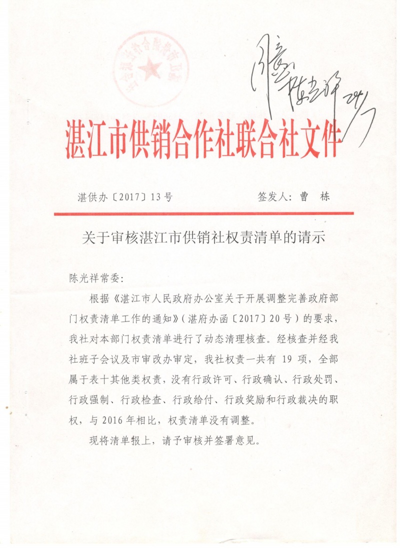 ?湛江市供銷(xiāo)社關(guān)于上報(bào)部門(mén)權(quán)責(zé)清單的函