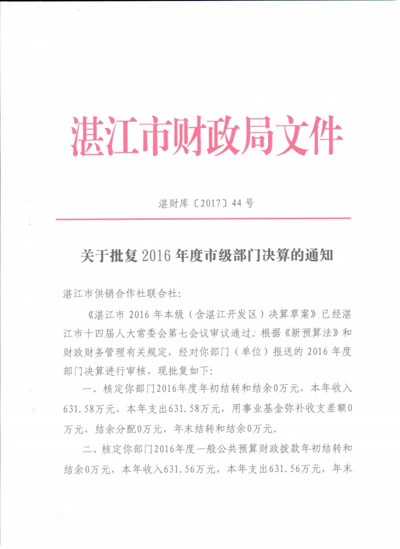 2016年湛江市供銷合作社聯(lián)合社部門決算基本情況說明