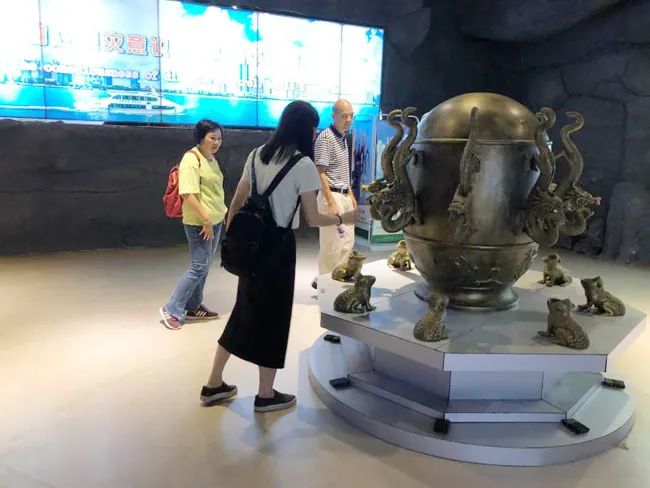 市民游客興致勃勃地觀賞著地震館的地動(dòng)儀