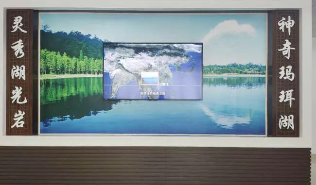 游客中心的LED屏幕正在輪播地學(xué)科普視頻和防疫科普視頻