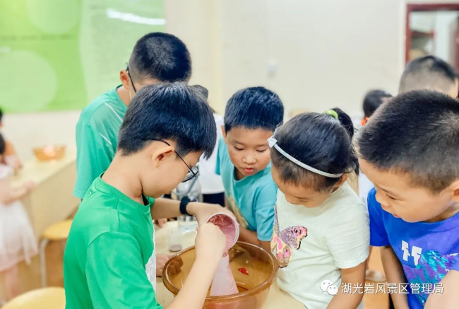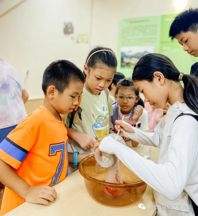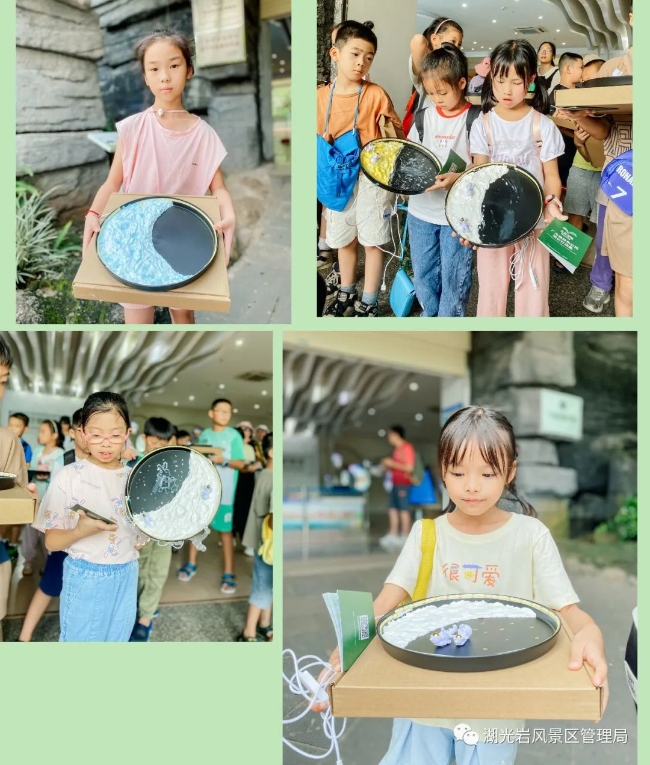 在湖光巖自然學(xué)校導(dǎo)師的帶領(lǐng)下,50名小朋友走近自然,了解科學(xué),了解自然背后的科學(xué)原理。火山科普課堂讓他們了解了火山的形成與分類、火山噴發(fā)的原理、火山的影響;氣象科普課堂讓他們認(rèn)識(shí)了二十四節(jié)氣秋分的節(jié)氣由來(lái)、氣候特點(diǎn)、對(duì)人類的影響;戶外植物科普講解讓他們實(shí)地觀察了植物,并探索了植物隱藏本領(lǐng)的秘密。為了增加科普活動(dòng)的趣味性,同時(shí)培養(yǎng)學(xué)生的實(shí)操能力和團(tuán)隊(duì)協(xié)作能力,科普導(dǎo)師還帶領(lǐng)同學(xué)們開展了火山模擬小實(shí)驗(yàn)和肌理月球燈DIY制作。