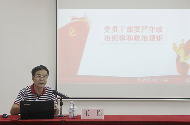 嶺南師范學(xué)院繼續(xù)教育學(xué)院院長、市委宣講團(tuán)成員王棟作黨課專題輔導(dǎo)