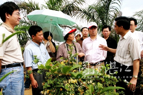 市領(lǐng)導陳亞德(右前一)陪同國家專家組驗收基地(龐華偉 攝)