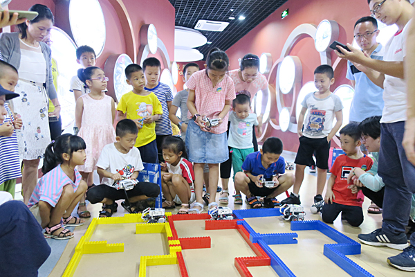 為了在讓孩子們深入體會到科技帶來的快樂,此次活動還安排了機(jī)器人科普小課堂,孩子們在老師的引導(dǎo)下學(xué)習(xí)搭建模型,控制操作機(jī)器人,并進(jìn)行走迷宮比賽?,F(xiàn)場氣氛熱烈,充滿歡聲笑語,孩子們躍躍欲試,家長們也熱情高漲。通過動手動腦,鍛煉了孩子們的想象力、觀察力和創(chuàng)新意識。