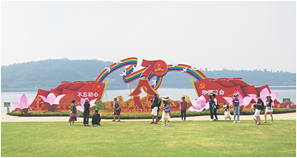 湖光巖景區(qū)湖濱廣場“70周年華誕”主題花展