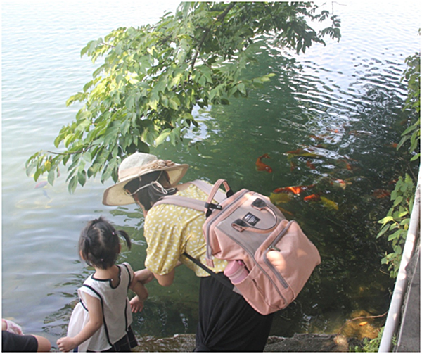 湖內(nèi)錦鯉戲水吸引游客駐足