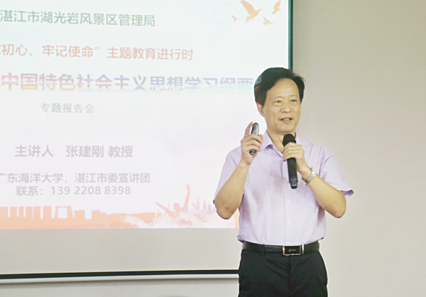 市委宣講團(tuán)講師、廣東海洋大學(xué)教授張建剛真聲情并茂地給大家講解綱要內(nèi)容