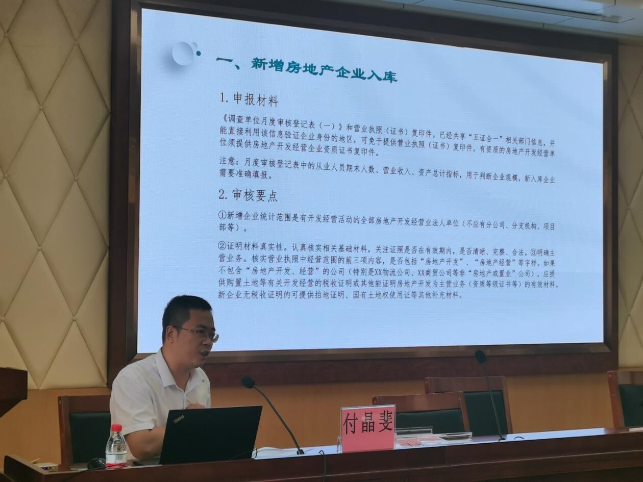 為進一步加強我市房地產(chǎn)和建筑業(yè)統(tǒng)計基礎(chǔ)工作,提高各縣市區(qū)統(tǒng)計部門和住建監(jiān)管部門對行業(yè)經(jīng)濟數(shù)據(jù)分析水平,提升房地產(chǎn)和建筑業(yè)企業(yè)對統(tǒng)計系統(tǒng)操作及建筑業(yè)扶持資金申報的熟悉程度,實現(xiàn)企業(yè)經(jīng)營數(shù)據(jù)應(yīng)統(tǒng)盡統(tǒng),6月24日,市住建局、市統(tǒng)計局、市稅務(wù)局聯(lián)合召開全市房地產(chǎn)和建筑業(yè)企業(yè)統(tǒng)計及綜合業(yè)務(wù)培訓(xùn)會。市住建局二級調(diào)研員莫大成,市統(tǒng)計局黨組成員、總統(tǒng)計師陳任慶出席培訓(xùn)并講話。