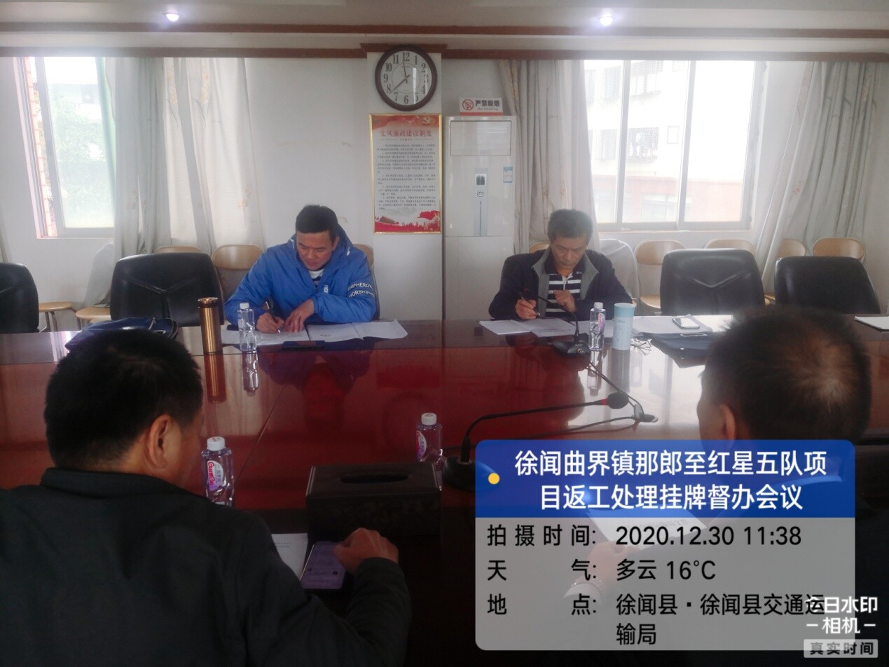 為扎實(shí)抓好省交通運(yùn)輸廳《廣東省交通運(yùn)輸廳關(guān)于2020年度“四好農(nóng)村路”建設(shè)攻堅(jiān)工程第三次質(zhì)量調(diào)研檢查情況的通報(bào)》 (粵交質(zhì)管字〔2020〕151號(hào))和2020年11月23日至12月4日省交通運(yùn)輸廳第六次質(zhì)量調(diào)研檢查復(fù)查問題的整改落實(shí),確?!八暮棉r(nóng)村路”攻堅(jiān)建設(shè)工程質(zhì)量。針對(duì)徐聞縣曲界鎮(zhèn)那朗至紅星五隊(duì)項(xiàng)目存在水泥混凝土抽檢芯樣彎拉強(qiáng)度不合格問題,我局分管領(lǐng)導(dǎo)、黨組成員、總工程師趙一方高度重視,要求立即抓好整改。2020年12月30日上午,工程質(zhì)量管理科科長馮謀欣同志帶領(lǐng)工作組在徐聞縣交通運(yùn)輸局召開了曲界鎮(zhèn)那朗至紅星五隊(duì)項(xiàng)目返工處理掛牌督辦會(huì)議,徐聞縣交通運(yùn)輸局綜合規(guī)劃建設(shè)股股長李仁南、廣東協(xié)立工程咨詢有限公司邱俊、徐聞縣勞動(dòng)建筑工程公司陳子云等人員參加了會(huì)議。