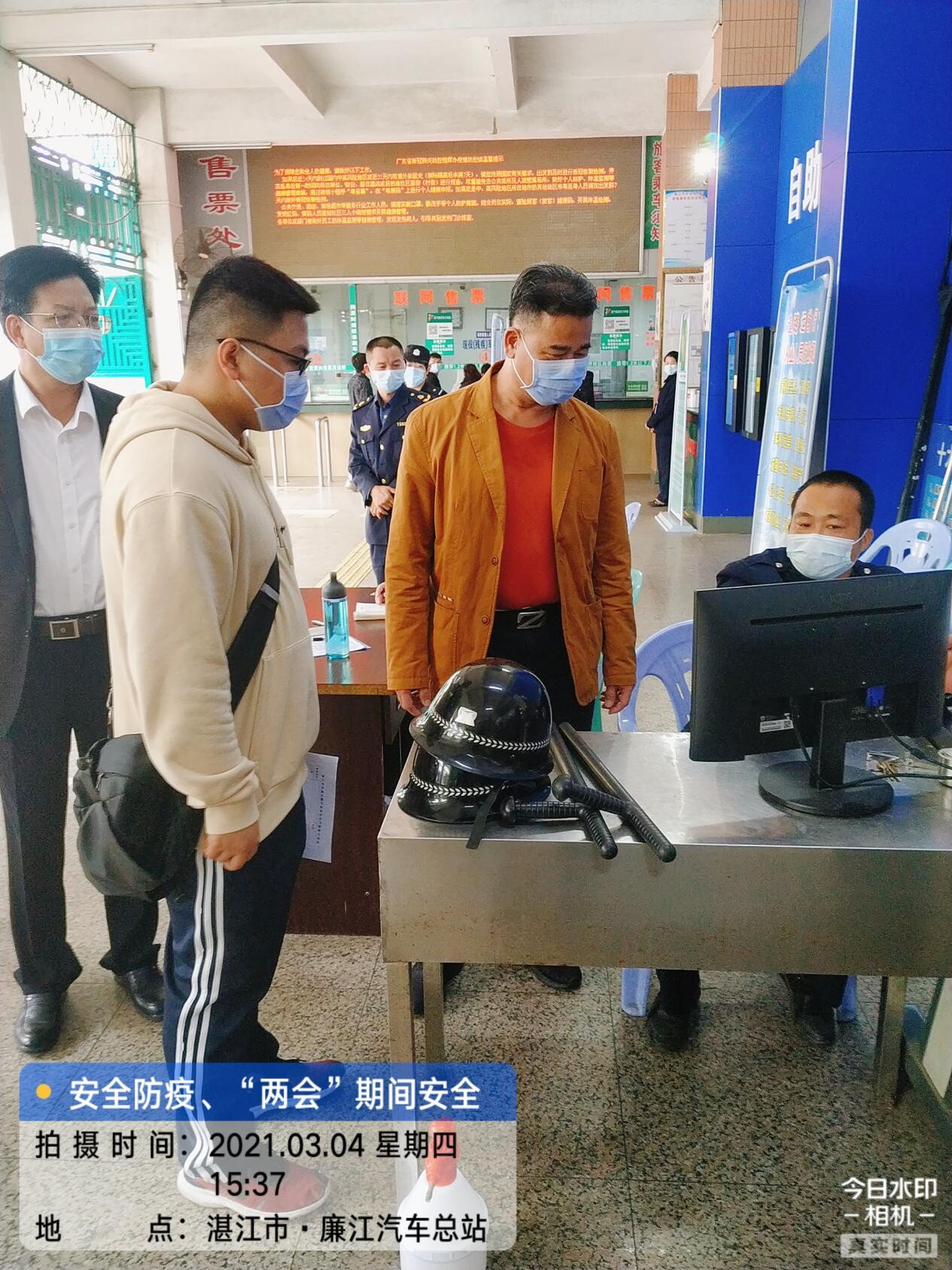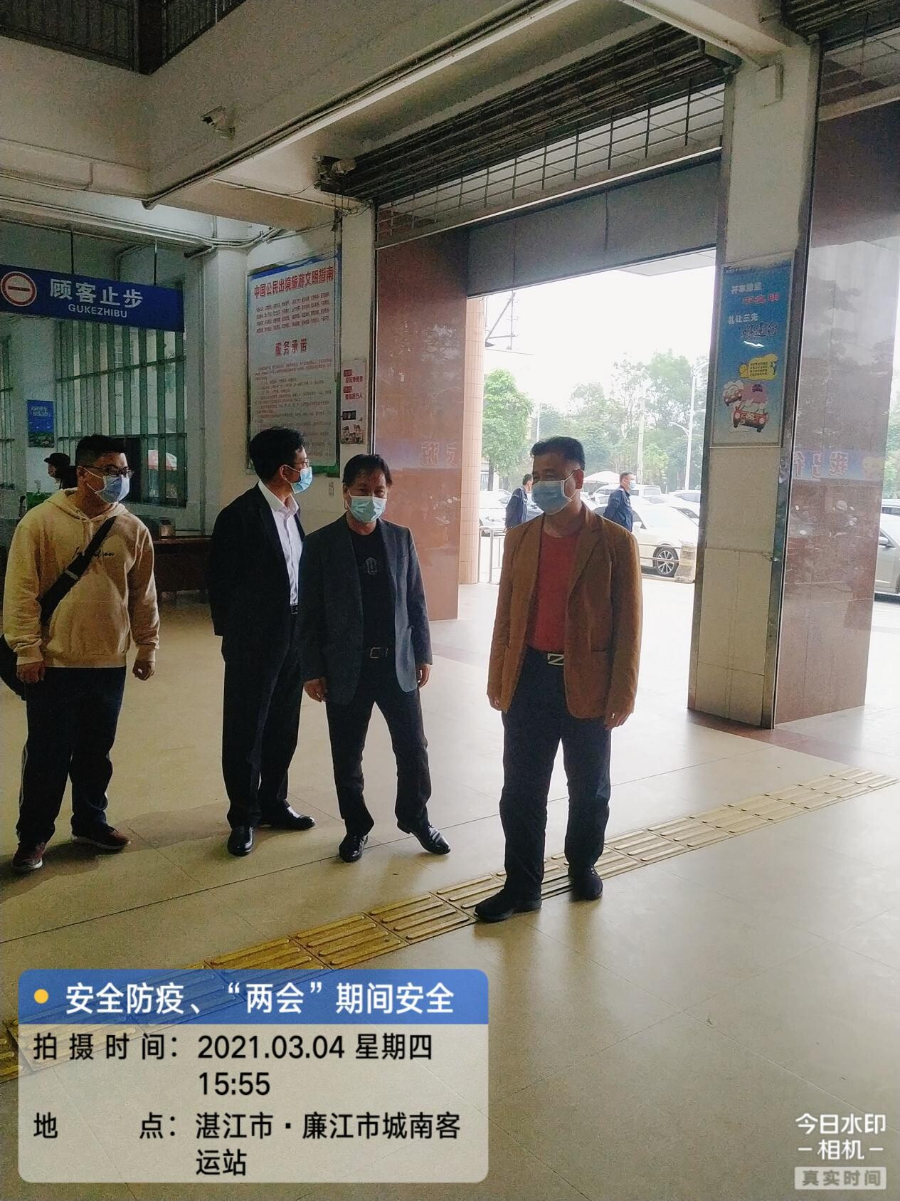 根據(jù)《湛江市交通運輸局關(guān)于加強全國“兩會”期間安全生產(chǎn)和應(yīng)急管理工作的通知》(湛交安〔2021〕13號)要求,2021年3月4日我局黨組成員、三級調(diào)研員陳興帶綜合運輸科、安全監(jiān)督和應(yīng)急管理科相關(guān)人員深入廉江對汽車總站、城南客運站進行全國“兩會”期間安全生產(chǎn)和應(yīng)急管理工作實地督導。