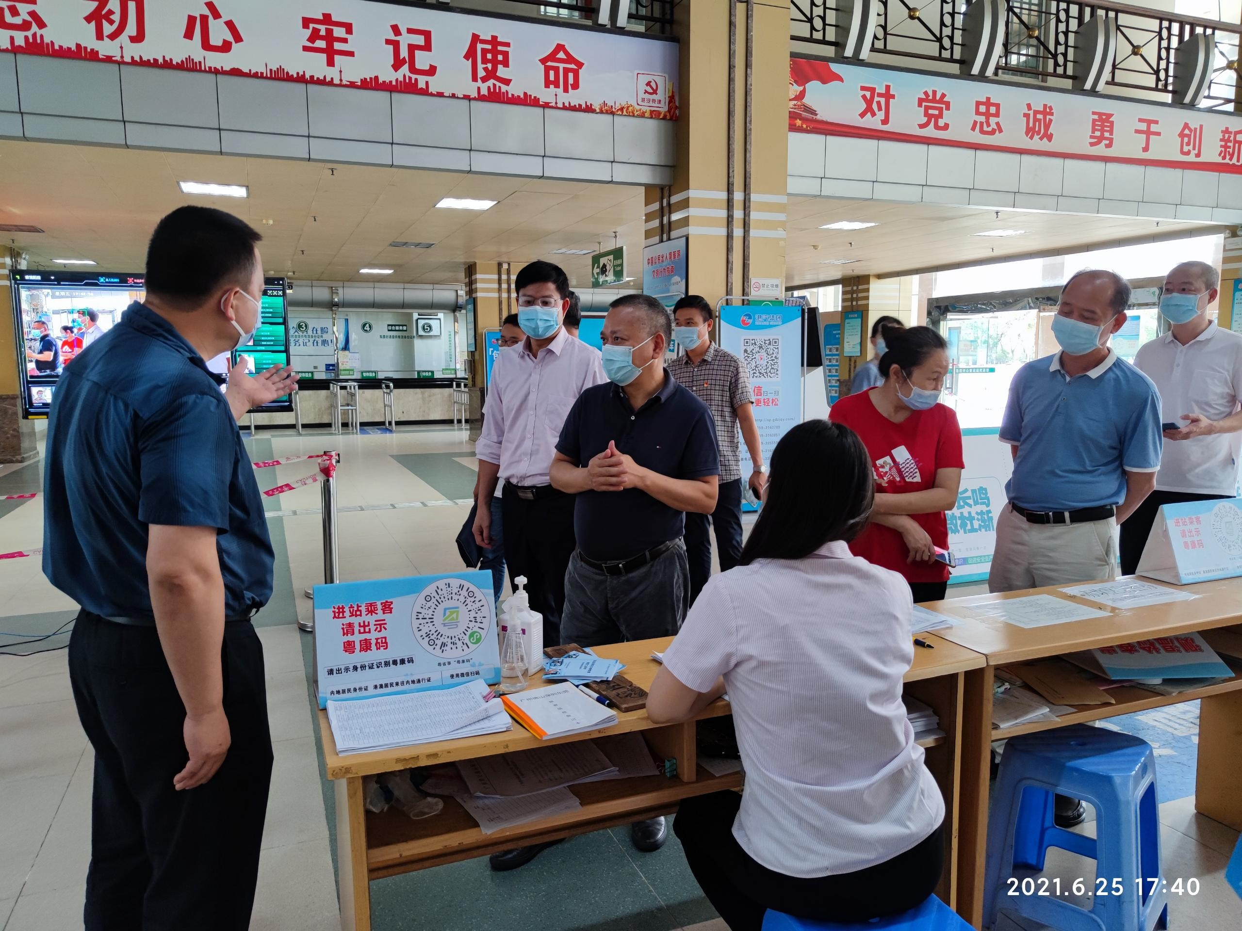 按照近期省委、省政府和市委、市政府有關(guān)會(huì)議決策部署和有關(guān)文件精神要求,莊光權(quán)局長(zhǎng)6月25日帶隊(duì)到湛江大道項(xiàng)目施工現(xiàn)場(chǎng)、麻章車站和海田車站開展疫情防控和安全生產(chǎn)大檢查,消除安全風(fēng)險(xiǎn)隱患,防范發(fā)生疫情和安全事故,為建黨一百周年?duì)I造安全穩(wěn)定的環(huán)境。