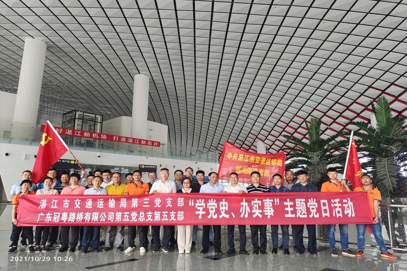 為創(chuàng)建模范機關(guān),增強支部凝聚力,提高支部戰(zhàn)斗力,2021年10月29日,機關(guān)第三黨支部按照《湛江市交通運輸局“政企黨組織結(jié)對共建”活動方案》有關(guān)精神,積極與廣東冠粵路橋有限公司開展政企黨組織結(jié)對共建活動,共同參觀學(xué)習(xí)湛江吳川機場的建設(shè)。