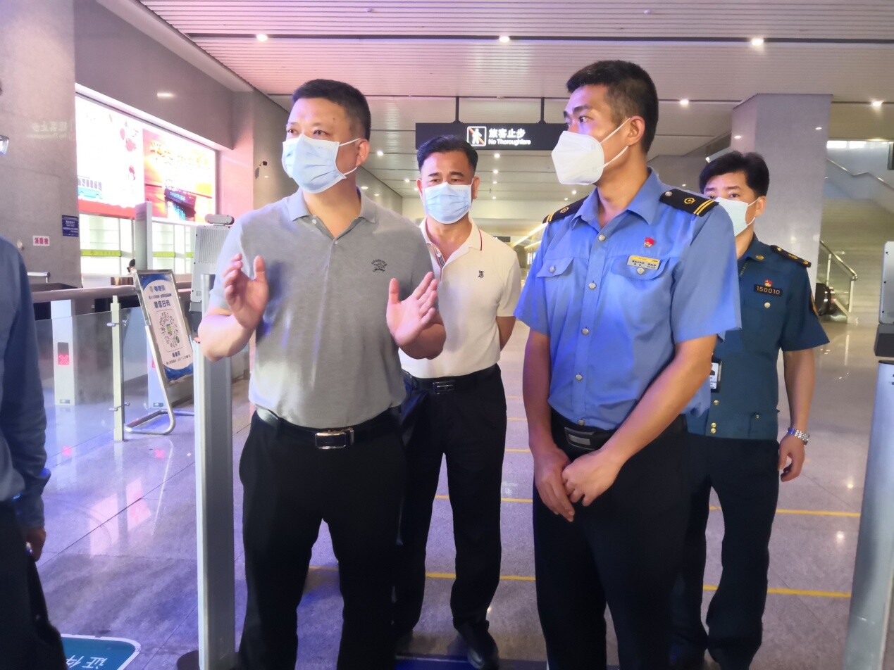 督導(dǎo)組一行首先來到湛江西站,現(xiàn)場檢查乘客出入站戴口罩、測體溫、亮綠碼“三個100%”是否落實到位,詳細了解粵康碼黃碼、紅碼及發(fā)熱旅客處置流程,旅客落地核酸檢測、站場消毒、安全生產(chǎn)以及突發(fā)事件應(yīng)急處置情況。陳再東局長強調(diào),湛江西站客流量大,是疫情防控的重要關(guān)口之一,要時刻繃緊疫情防控這根弦,壓緊壓實企業(yè)主體責(zé)任,嚴格按照最新版的客運站場和交通運輸工具疫情防控指南要求,落實落細站場通風(fēng)消毒、落地核酸檢測等疫情防控各項工作,同時要堅持底線思維,切實抓好安全生產(chǎn)及防臺防汛工作,特別是做足做實惡劣天氣等突發(fā)情況應(yīng)急處置預(yù)案,確保站場安全平穩(wěn)有序。