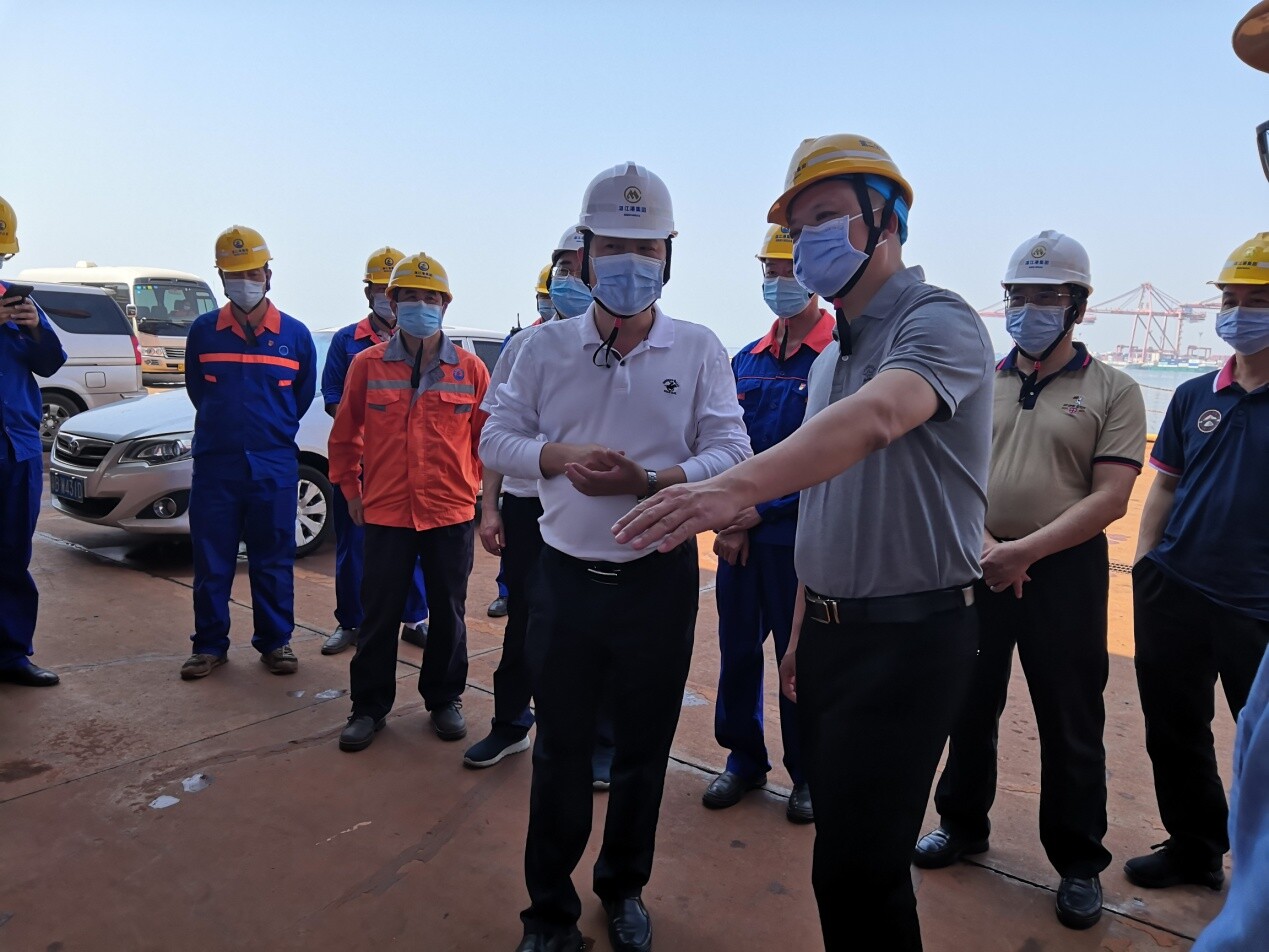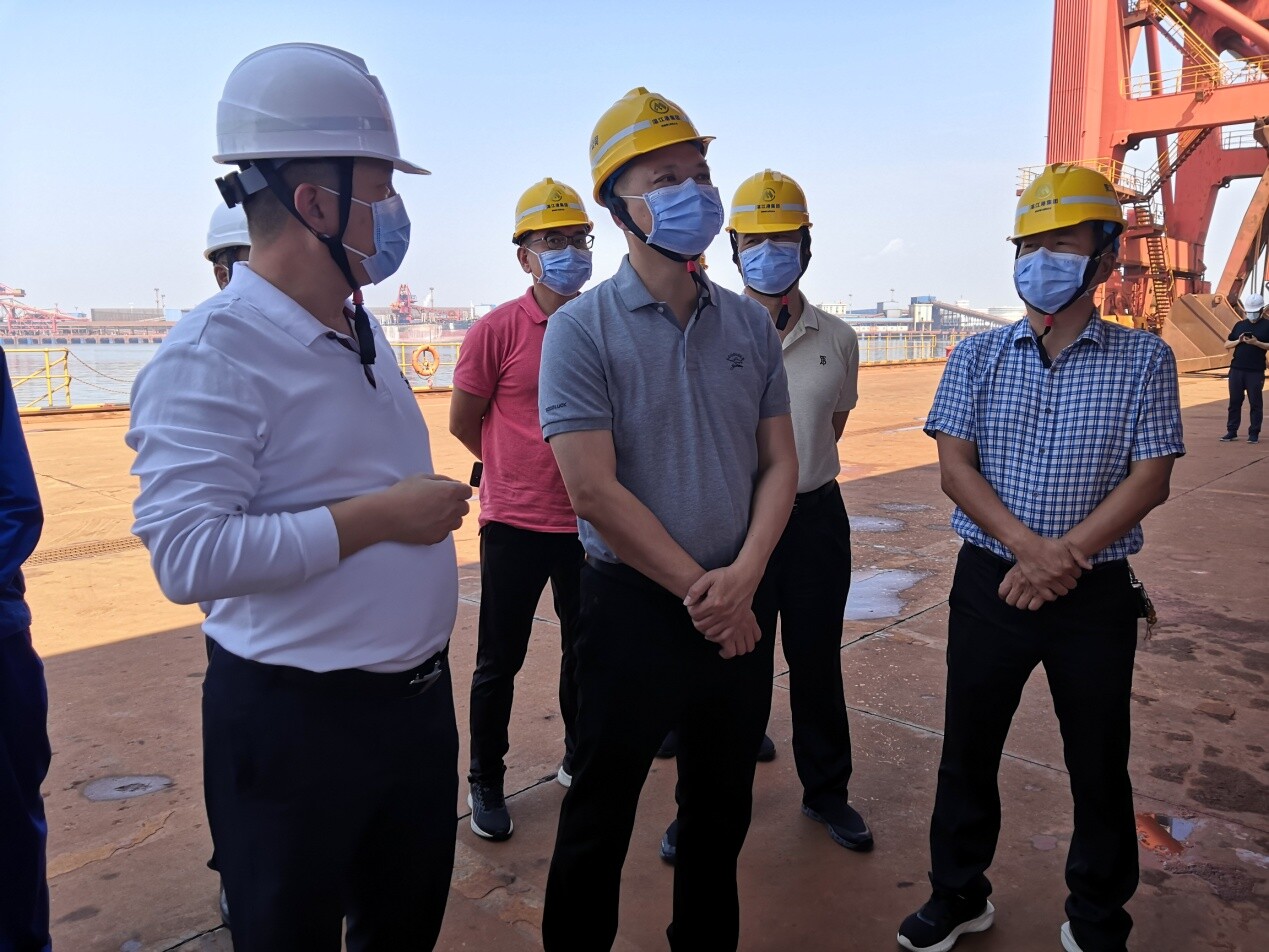 緊接著督導(dǎo)組一行前往湛江港二分公司碼頭,認真查看了30萬噸散貨碼頭現(xiàn)場作業(yè)視頻監(jiān)控,詳細了解涉外船舶電子圍欄設(shè)置、登輪作業(yè)消殺及應(yīng)急處置工作流程等情況。陳再東局長指出,涉外港口作業(yè)是交通運輸行業(yè)“外防輸入”的最大風(fēng)險點,務(wù)必要將其作為疫情防控工作的重中之重,堅持人物環(huán)境同防,嚴格按照《港口及其一線人員新冠肺炎疫情防控工作指南(第九版)》,嚴格落實“作業(yè)點就是風(fēng)險點”“先消殺后作業(yè)”,視頻監(jiān)控全覆蓋全過程記錄,落實港口作業(yè)人員全流程閉環(huán)管理,從嚴從細落實每一個環(huán)節(jié)、每一項要求,堅決筑牢我市疫情防控港口水運口岸“外防輸入”的防線。