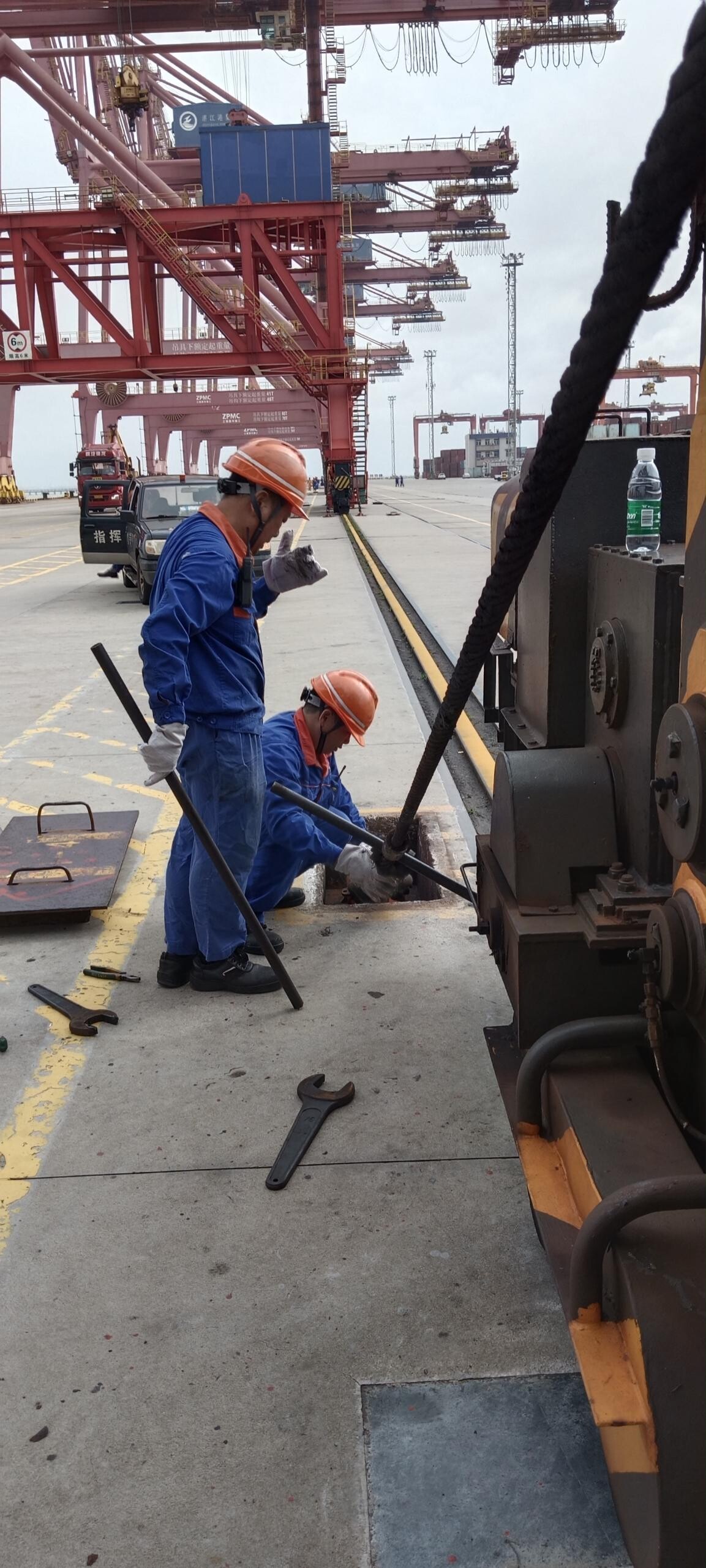 2023年7月18日下午,臺風(fēng)“泰利”剛剛結(jié)束,市交通運輸局黨組成員、副局長江強同志就帶領(lǐng)局港航科的同志到企業(yè)檢查復(fù)工復(fù)產(chǎn)情況。首先,檢查組一行來到霞山區(qū)漁人碼頭檢查,漁人碼頭引橋在這次臺風(fēng)中被摧毀,江強同志立刻督促企業(yè)要想方設(shè)法盡快修復(fù)被臺風(fēng)摧毀的引橋,早日恢復(fù)漁人碼頭至特呈島的水上交通線路,方便群眾出行。隨后,檢查組一行又來到湛江港(集團)股份有限公司第一分公司、湛江港國際集裝箱碼頭有限公司檢查復(fù)工復(fù)產(chǎn)情況。兩個企業(yè)碼頭工人正在解除塔吊、門吊加固設(shè)備,為復(fù)工復(fù)產(chǎn)做好充分準(zhǔn)備工作。