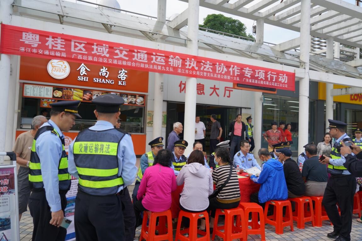 為提升執(zhí)法監(jiān)管合力和執(zhí)法效能,推進(jìn)高速公路交通運(yùn)輸執(zhí)法“區(qū)域協(xié)作”聯(lián)動機(jī)制建設(shè),規(guī)范道路運(yùn)輸市場秩序,服務(wù)和保障珠江流域及瓊州海峽區(qū)域協(xié)調(diào)發(fā)展,12月13日上午,湛江市交通運(yùn)輸局聯(lián)合湛江市交警支隊(duì)高速公路第一大隊(duì)、廣西壯族自治區(qū)交通運(yùn)輸綜合行政執(zhí)法局第九支隊(duì)、廣東省高速公路有限公司湛江分公司路政大隊(duì)在G75線蘭海高速橫山服務(wù)區(qū)和高橋收費(fèi)站開展粵桂區(qū)域交通運(yùn)輸執(zhí)法協(xié)作專項(xiàng)行動。此次行動共出動執(zhí)法車輛6輛次,執(zhí)法人員25人次,依法排查貨運(yùn)車輛20余輛次,發(fā)放宣傳單張300余張。