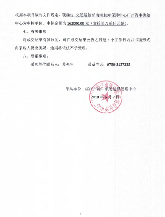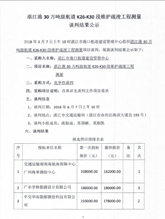 湛江港30萬噸級航道K26-K30段維護疏浚工程測量談判結(jié)果公示