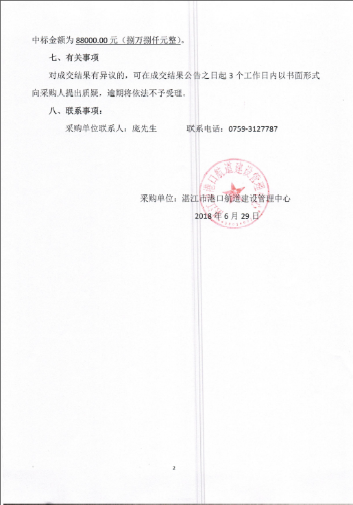 湛江港30萬噸級航道改擴建工程初步設計招標代理服務評審結果公示