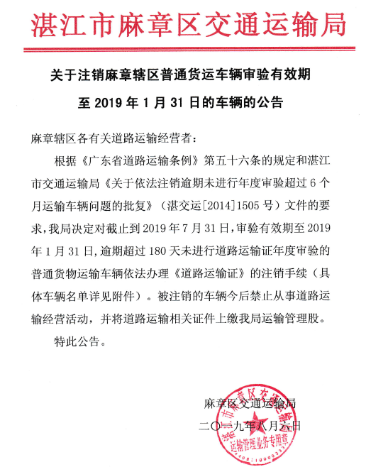 麻章區(qū)截止2019年7月31日逾期超過180天未進行年度審驗的營運車輛.xls