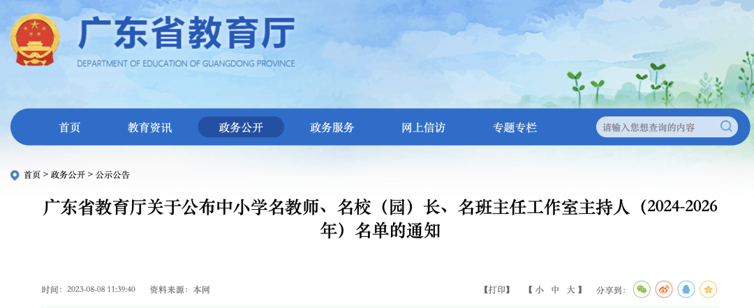 廣東省教育廳公布