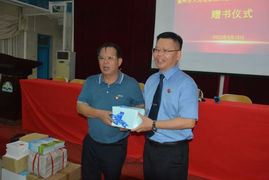 當(dāng)天,雷州市人民檢察院黨組書(shū)記、檢察長(zhǎng)陳成忠?guī)ьI(lǐng)該院相關(guān)人員走進(jìn)雷州市第一中學(xué)初中部,首先舉行一個(gè)簡(jiǎn)單的捐書(shū)儀式,代表該院向該校師生捐贈(zèng)一批法治教育圖書(shū)。隨后,給廣大師生上了一堂別開(kāi)生面的法治課,近1000名師生認(rèn)真傾聽(tīng)了法治課。