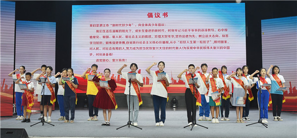 受表彰的“新時(shí)代好少年”在宣讀倡議書。