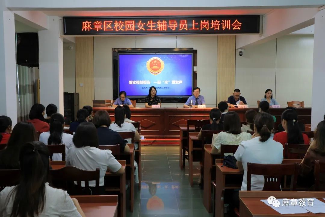 9月27日下午,麻章區(qū)人民檢察院聯(lián)合麻章區(qū)教育局舉行校園女生輔導(dǎo)員上崗培訓(xùn)會(huì),成功聘任麻章區(qū)首批校園女生輔導(dǎo)員。本次校園女生輔導(dǎo)員是由轄區(qū)各學(xué)校挑選政治思想好、熱愛(ài)關(guān)心學(xué)生、工作認(rèn)真負(fù)責(zé)的女教師擔(dān)任,負(fù)責(zé)做好在校女生生理、心理輔導(dǎo)工作,及時(shí)關(guān)注匯報(bào)女生思想動(dòng)態(tài)變化,承擔(dān)預(yù)防未成年學(xué)生遭受侵害的工作職責(zé)。區(qū)檢察院沈恒炫副檢察長(zhǎng)、區(qū)教育局馮春達(dá)副局長(zhǎng)出席會(huì)議,全區(qū)29名女生輔導(dǎo)員參加會(huì)議。