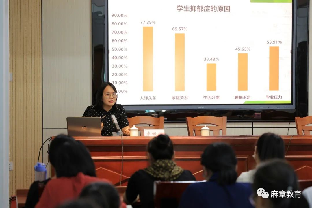 本次培訓(xùn)會(huì)特別邀請(qǐng)了霞山區(qū)婦幼保健院心理治療師李佩詩(shī)作主題為《兒童青少年情緒障礙的識(shí)別》的專題講座。培訓(xùn)中,李佩詩(shī)通過(guò)典型事例,從青少年出現(xiàn)情緒障礙的原因、主要表現(xiàn)等方面做生動(dòng)講解,同時(shí)聚焦未成年人預(yù)防性侵害、學(xué)生欺凌等問(wèn)題,引導(dǎo)在座女生輔導(dǎo)員們關(guān)注青春期孩子的成長(zhǎng)特點(diǎn),理性和平地處理好敏感話題,以適時(shí)適度適當(dāng)?shù)姆椒ɡM(jìn)與孩子心靈的距離,幫助他們預(yù)防和解決情緒障礙問(wèn)題。