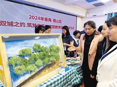 兩地幼兒園老師一起觀賞《美麗湛江紅樹林》系列貼畫。