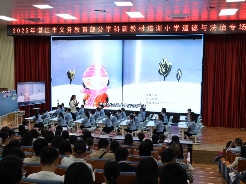 春意盎然,教研正興。3月26日,由湛江市教育局教學(xué)研究室主辦的“2025年湛江市義務(wù)教育部分學(xué)科新教材培訓(xùn)(小學(xué)道德與法治專場(chǎng))”活動(dòng)在湛江市第三十六小學(xué)順利舉行。本次活動(dòng)旨在深入貫徹新課標(biāo)精神,幫助教師準(zhǔn)確把握新教材的教學(xué)方向,提升課堂教學(xué)質(zhì)量。湛江市各縣(市、區(qū))及市直屬小學(xué)的教研員、骨干教師參加了本次活動(dòng),本次活動(dòng)采用線上+線下的形式進(jìn)行,現(xiàn)場(chǎng)觀摩的教師達(dá)300余人,線上觀看的教師近3000人。