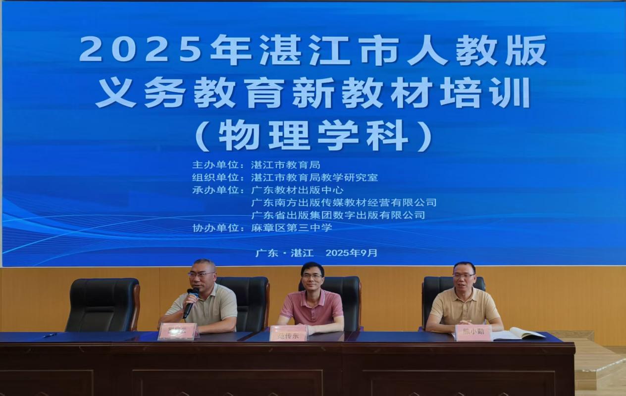 為系統(tǒng)落實(shí)《義務(wù)教育課程方案和物理課程標(biāo)準(zhǔn)(2022版)》及配套新教材所倡導(dǎo)的教學(xué)理念,精準(zhǔn)對(duì)接學(xué)科核心素養(yǎng)目標(biāo),助力我市初中物理教師準(zhǔn)確把握新教材編寫(xiě)邏輯、優(yōu)化新教材使用策略。9月12日,2025年湛江市人教版義務(wù)教育物理新教材培訓(xùn)在麻章區(qū)第三中學(xué)正式開(kāi)啟,此次培訓(xùn)由湛江市教育局主辦,采用“線上+線下”同步模式覆蓋全市各區(qū)縣,教師可以通過(guò)直播間實(shí)時(shí)參與,共同為打通“新課標(biāo)理念→新教材使用→課堂教學(xué)實(shí)踐”的轉(zhuǎn)化通道、推動(dòng)初中物理教學(xué)提質(zhì)蓄力。