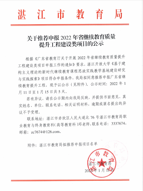 關(guān)于推薦申報2022年省繼續(xù)教育質(zhì)量提升工程建設(shè)類項目的公示.pdf
