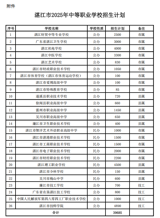 附件:湛江市2025年中等職業(yè)學(xué)校招生計(jì)劃