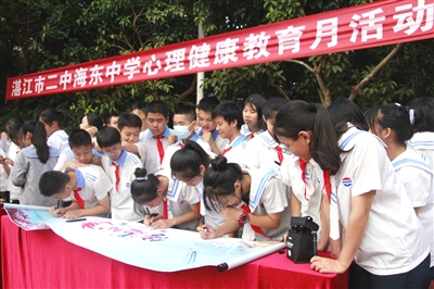湛江市教育局因應(yīng)學(xué)生心理問(wèn)題多發(fā)態(tài)勢(shì),堅(jiān)持生命至上,以“陽(yáng)光心理,護(hù)航成長(zhǎng)”為主題,打造未成年人思想道德建設(shè)常態(tài)化工作品牌,做細(xì)做實(shí)學(xué)生心理健康工作,培養(yǎng)學(xué)生積極樂(lè)觀、健康向上的心理品質(zhì),促進(jìn)學(xué)生陽(yáng)光成長(zhǎng)。三個(gè)“100%”守護(hù)全市學(xué)生心理健康,全市各學(xué)校100%設(shè)立心理輔導(dǎo)室、100%配備專兼職心理教師、100%開(kāi)設(shè)心理健康教育課。