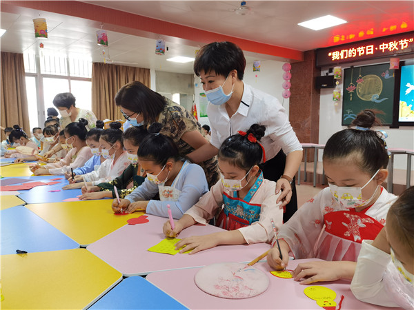 9月8日,市十九小的師生們正在制作“中秋書簽”。 記者 林石湛 攝