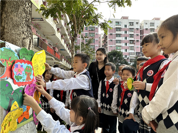 “多一份關(guān)愛,多一份呵護(hù),從我們做起!”清晨的校園,響徹鏗鏘有力的愛綠護(hù)綠倡議。隨后,師生們一起以實(shí)際行動(dòng)愛護(hù)綠美環(huán)境。松土、培土、澆水……活動(dòng)中,師生們興致勃勃地忙碌著,為花草樹木的茁壯成長揮灑汗水。在“我和小樹想對大家說”環(huán)節(jié),學(xué)生們興奮地拿出精心制作的手工卡粘貼在小樹上,傳遞保護(hù)環(huán)境的共同心聲。(湛江日報(bào) 記者陳荔雅 通訊員 關(guān)菁蕾)
