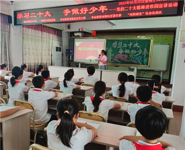 6月28日,湛江市第六小學、嶺師外語院團委、赤坎中山街道向陽社區(qū)關(guān)工委等聯(lián)合開展校園宣講活動。