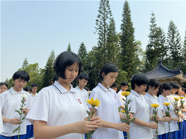 4月3日,湛江一中組織入團(tuán)積極分子、團(tuán)干等前往湛江市烈士陵園開(kāi)展“清明祭英烈”活動(dòng)(如圖,記者林石湛 攝)。